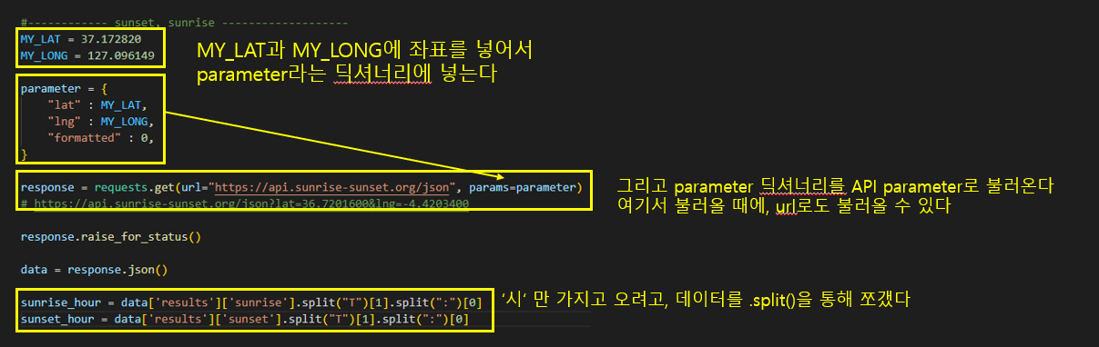 sunrise와sunset에 if문을 넣은 것은, 한국 시간으로 반환하기 위해서다 - 만약 지금 시간이