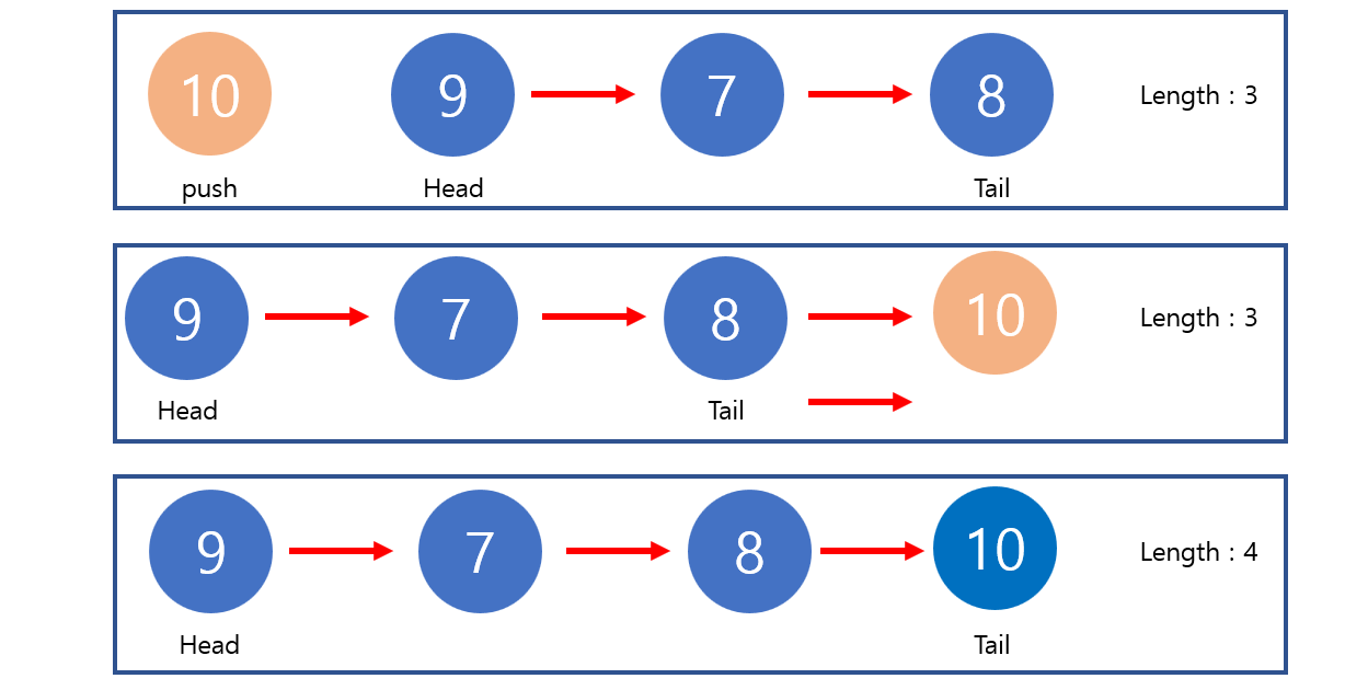 push(value) : 새로운 노드를 리스트에 넣는 것 (제일 뒤에)
