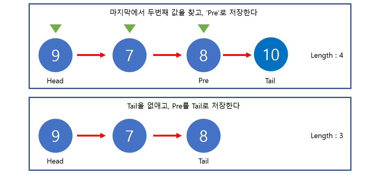 tail은 마지막에서 2번째 노드가 된다- 그렇게 Tail 값을 current로 바꿔준다