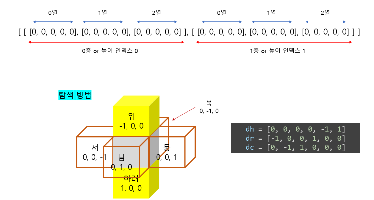 dh, dr, dc= [0, 0, 0, 0, -1, 1], [-1, 0, 0, 1, 0, 0], [0, -1, 1, 0, 0, 0]