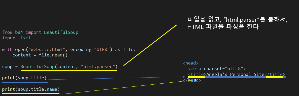 HTML 또는 XML 파일 안에 있는 데이터를 출력하는 것을 가능하게 해주는 파이썬 라이브러리