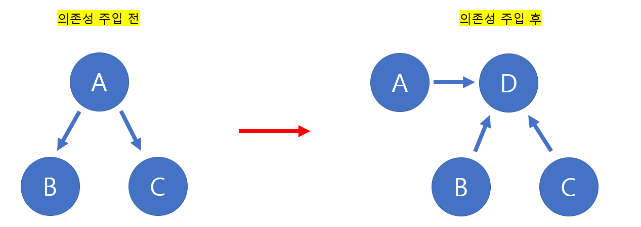 - 즉 D를 통해서 B와 C의 인스턴스를 등록하고, A가 그 인스턴스를 사용하는 것이다