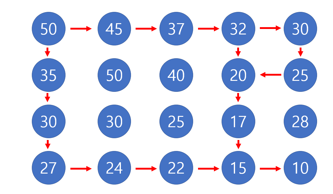 - 그리고, 20 ▶️ 17 ▶️ 15 ▶️ 10은 2번과 3번이 겹친다