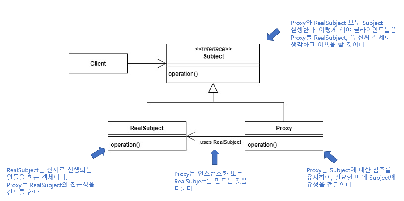 클라이언트가 서버에 요청을 하면, 서버 대신, 프록시가 응답을 해준다