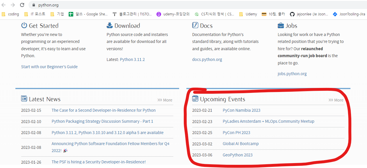 - python.org 의 Upcoming Event를 딕셔너리로 반환하는 것이다
