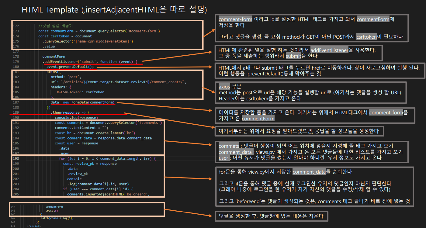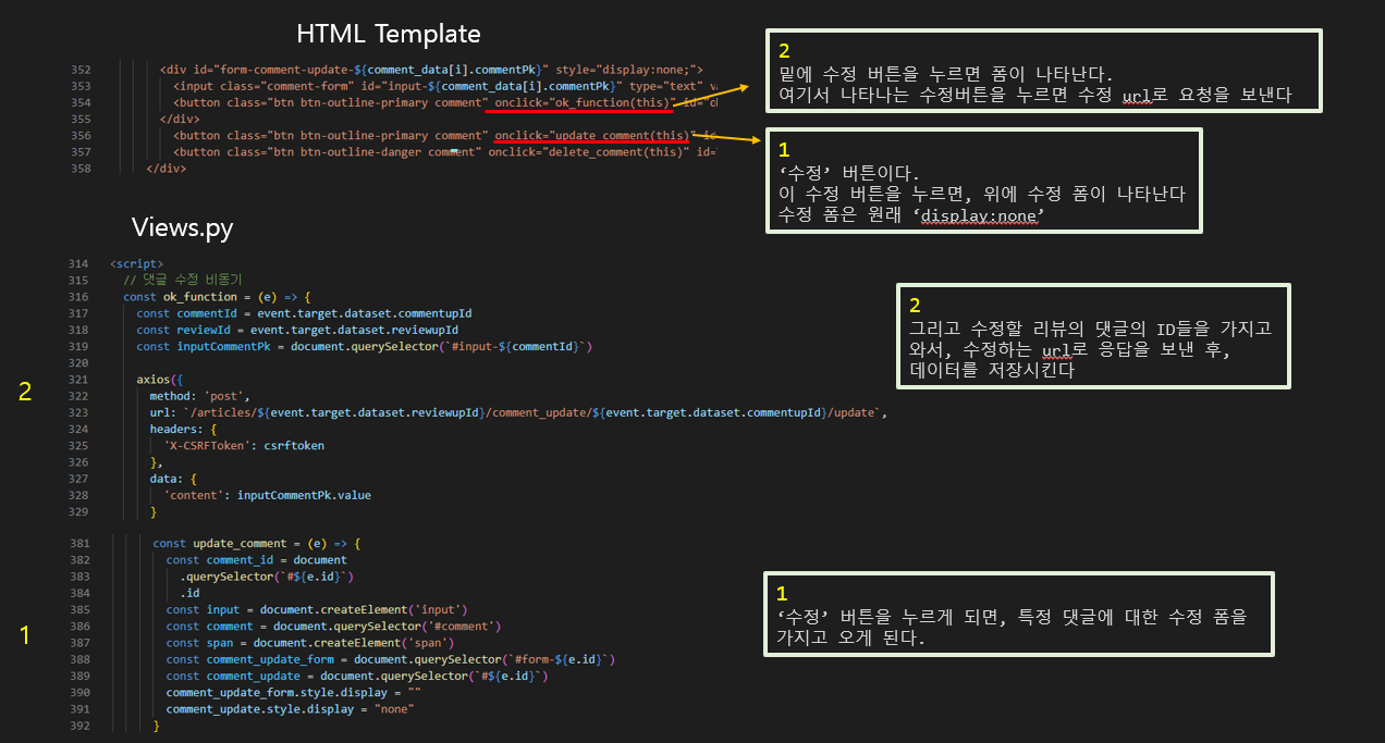 댓글 쓰기, 수정하기, 삭제하기 비동기 기능