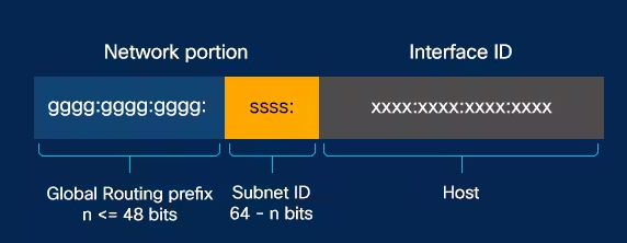 앞에 64비트는 네트워크 주소 그리고 뒤의 64비트는 인터페이스 주소로 나누어져 있다