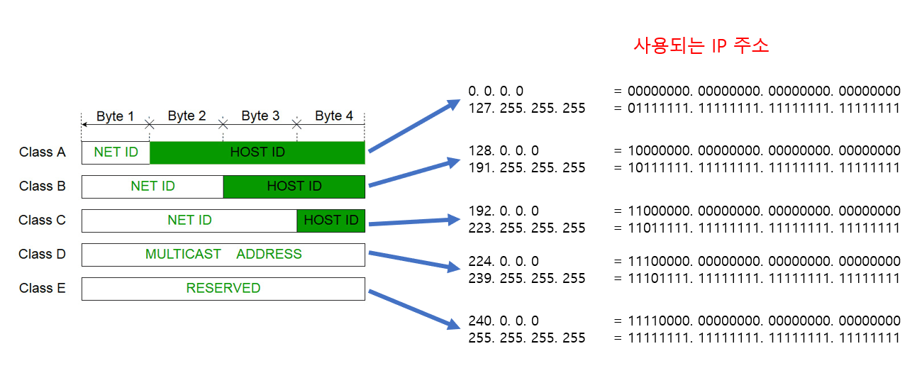 Class D는 멀티캐스트용 그리고 E는 주소가 부족할 때에 사용하는 클래스다