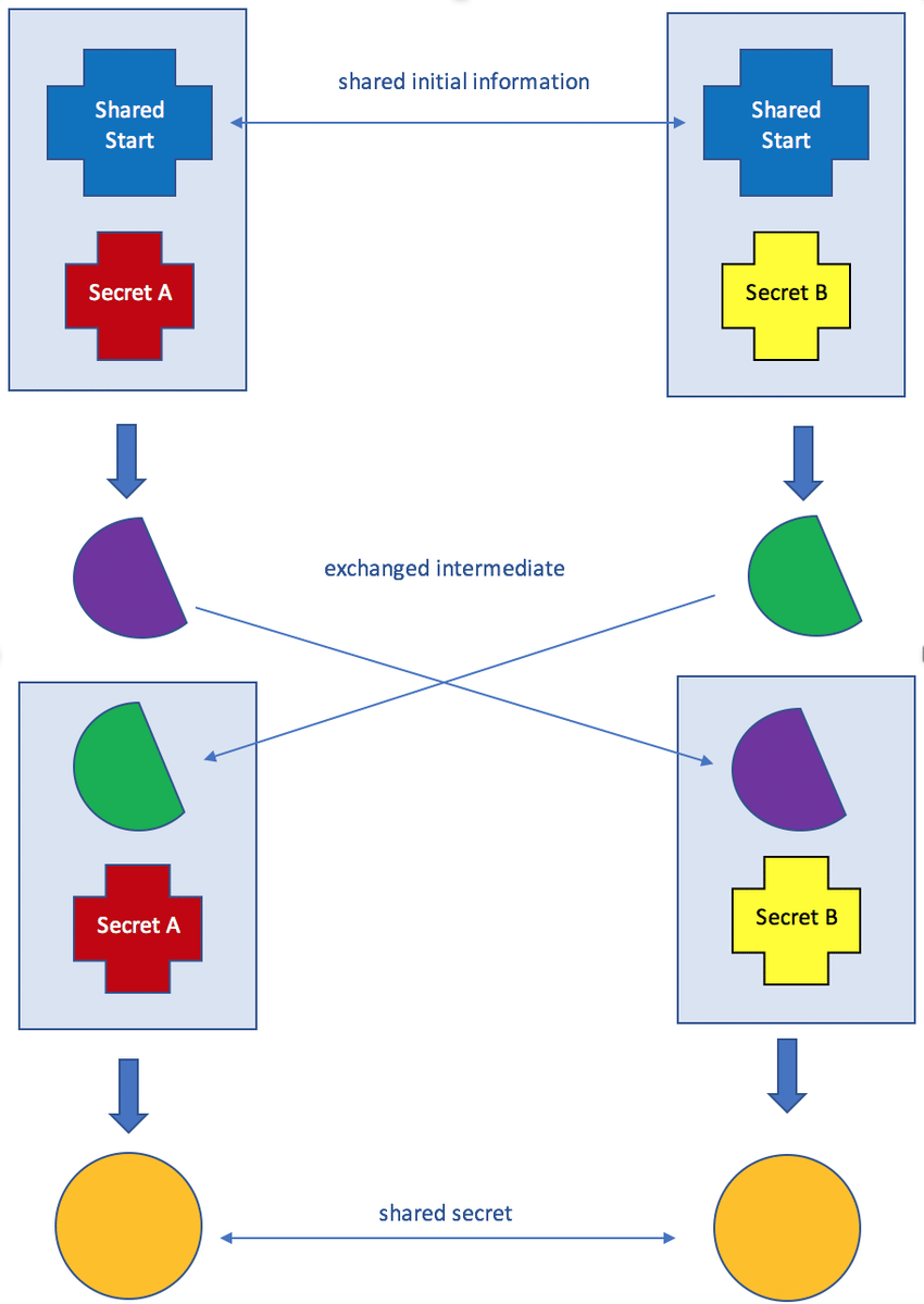 - 상대방의 공개키와, 나의 개인키를 이용고 계산을 통해 비밀키가 나오는 것이다