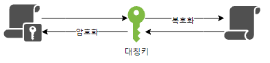 - 암호화, 복호화에 사용되는 키가 동일하다