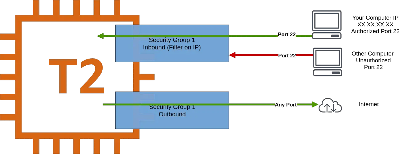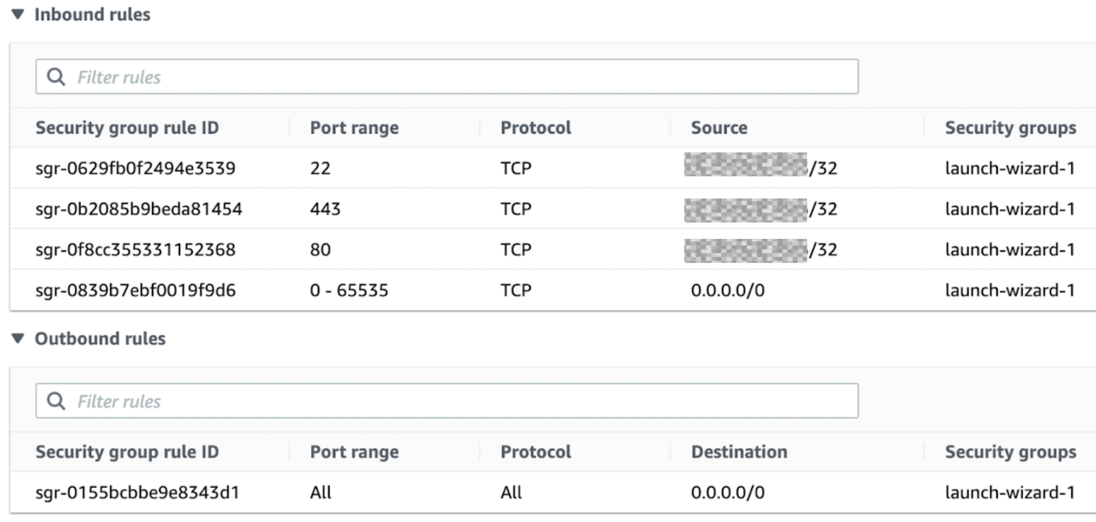 - SSH 접속을 할 때에 독립된 security group을 유지하는 것이 좋다