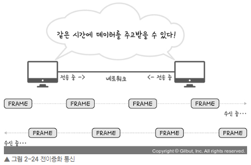 - 송신하는 경로, 수신하는 경로가 따로 나뉘어져 데이터를 주고 받는다