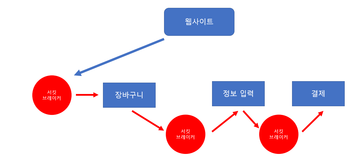 - 서킷 브레이커가 열렸다는 것은, 서킷 브레이커가 중간에서 클라이언트의 요청을 받는 것을 막는 것이다