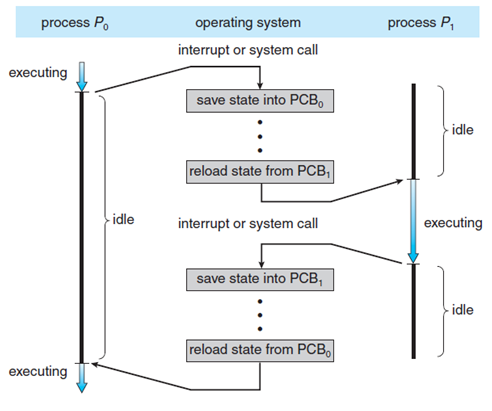 - P1을 사용하다 또 interrupt 또는 system call에 의해 방해를 받으면 P1의 상태를 PCB1에 저장을 한다