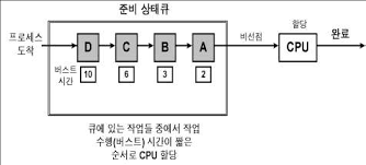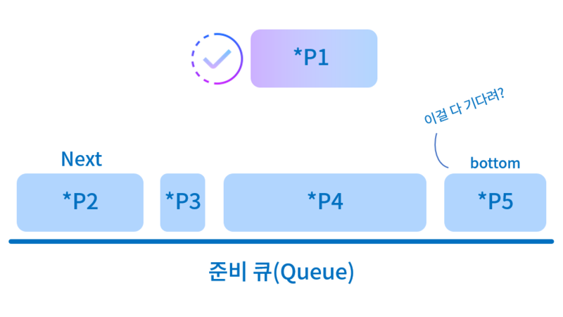 - 중간에 실행 시간이 짧은 프로세스가 들어오면, 그 프로세스는 '준비 큐'의 앞 부분으로 들어간다