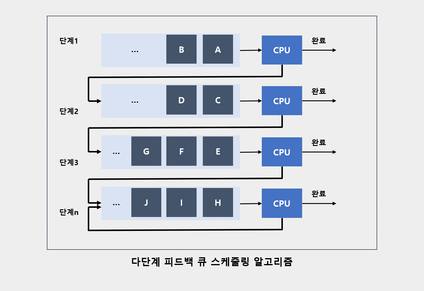 - 준비 큐 마다, 각자만의 알고리즘을 적용할 수 있다