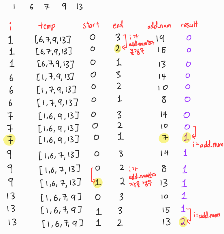: 투 포인터다 (인덱스로 표현, while문으로 구현)add_num