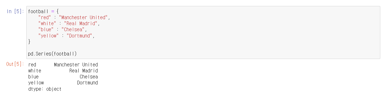 - Out[2]에서 숫자들은 인덱스다 (기본적으로 0부터 시작해서 1씩 더해준다)