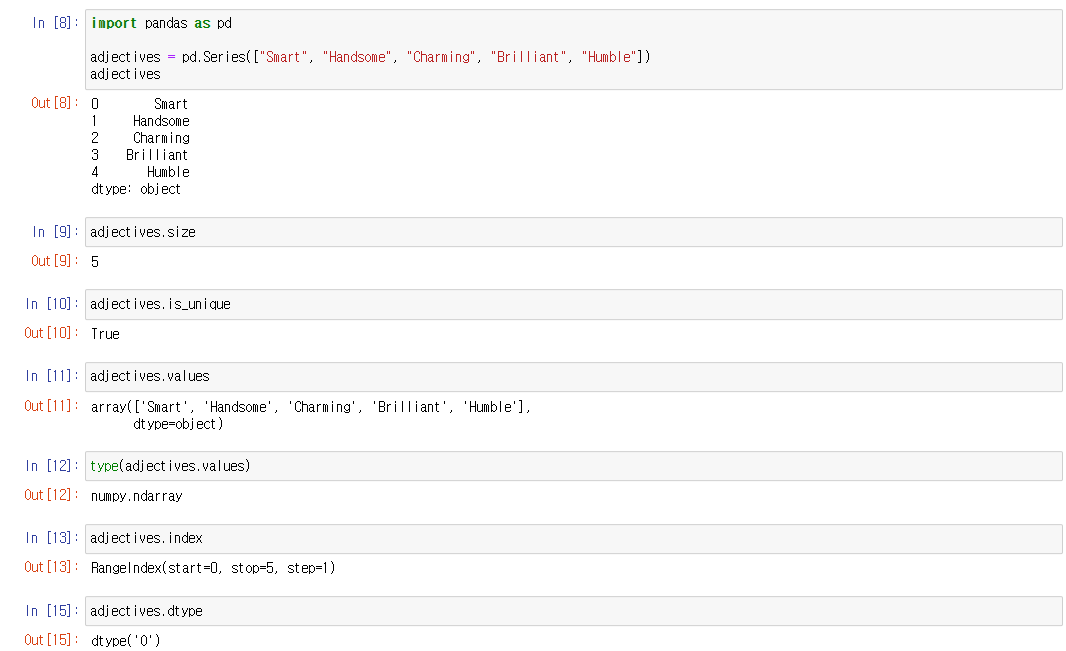 - 실제로는 Series는 numpy의 array로 저장이 된다
