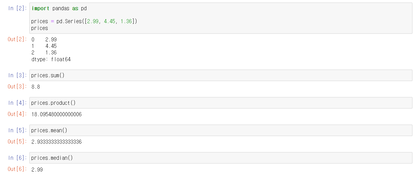 - .sum() : prices 안에 있는 값들을 모두 더하기