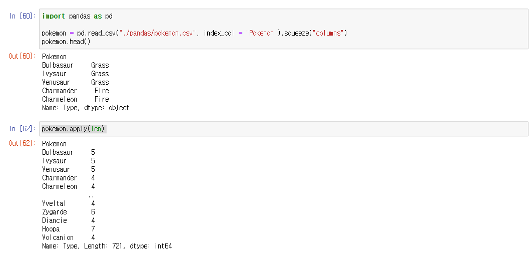 - 위에 같은 경우, pokemon 에 있는 모든 종류의 문자열의 길이를 출력해준다