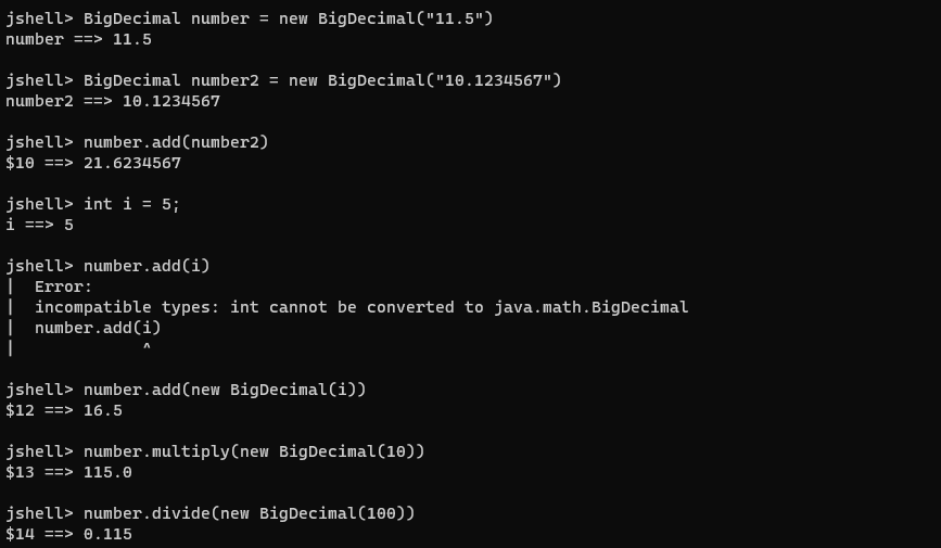 - BigDecimal로 만들어진 객체끼리만 계산이 가능하다