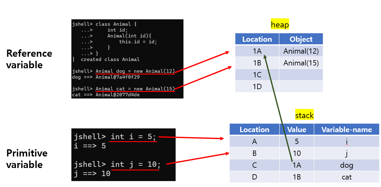 즉, stack에는 reference variable이 힙의 메모리 공간의 경로를 표시한다