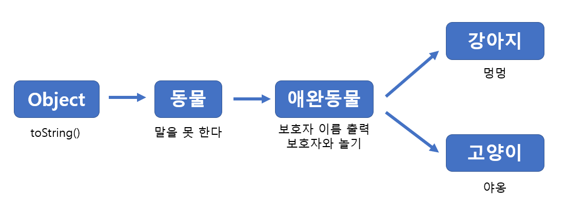 강아지 클래스를 물려받은 객체는, 애완 동물과 애완 동물의 객체라고도 할 수 있다