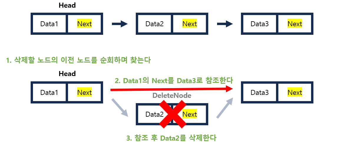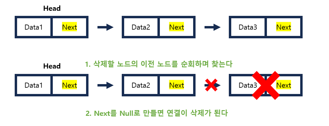 데이터 추가/삭제는 비교적 쉽게 실행되지만, 인덱스가 없다는 점에서, 데이터를 찾으려면 Head부분부터 순회를 해야 한다 (탐색 속도 저하)