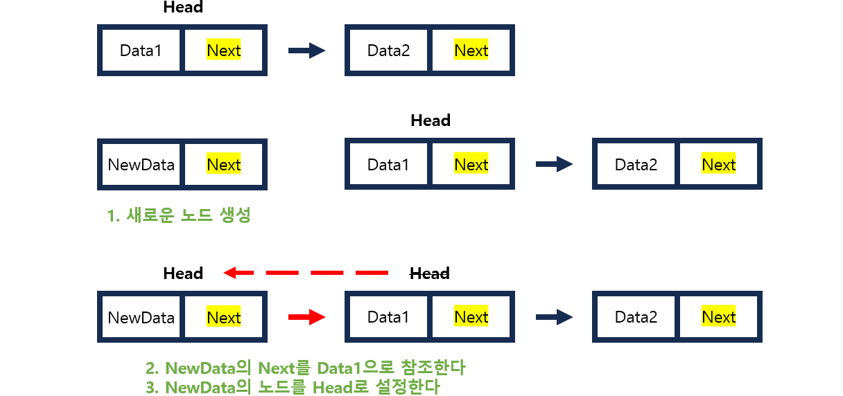 - 노드에 다음 노드가 참조된 제일 간단한 형태의 연결 리스트다