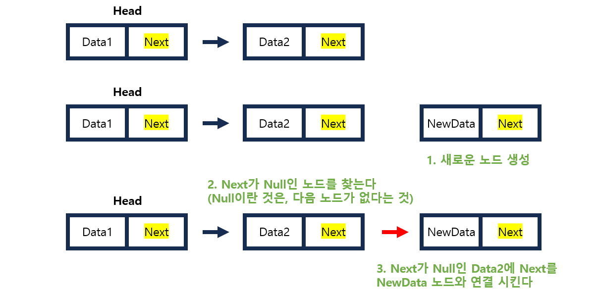 - 제일 마지막 노드의 포인터는 NULL과 연결이 되어 있다