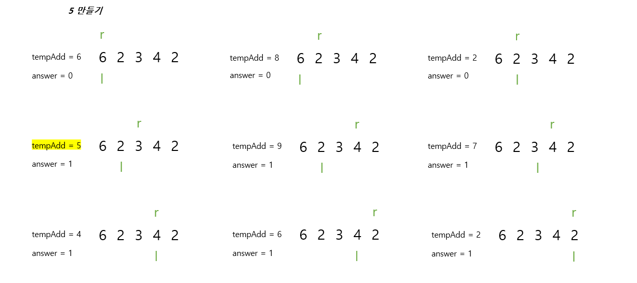 r이 움직일때마다 tempAdd에 새로운 인덱스의 값을 추가해준다