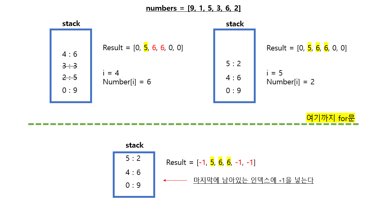 } else if (numbers[stack.peek()] >= numbers[i]) {