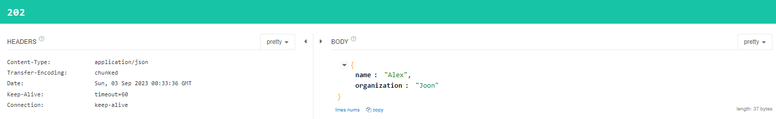 - 이는 HttpStatus.Accepted는 응답 코드 202를 가지고 있기 때문이다