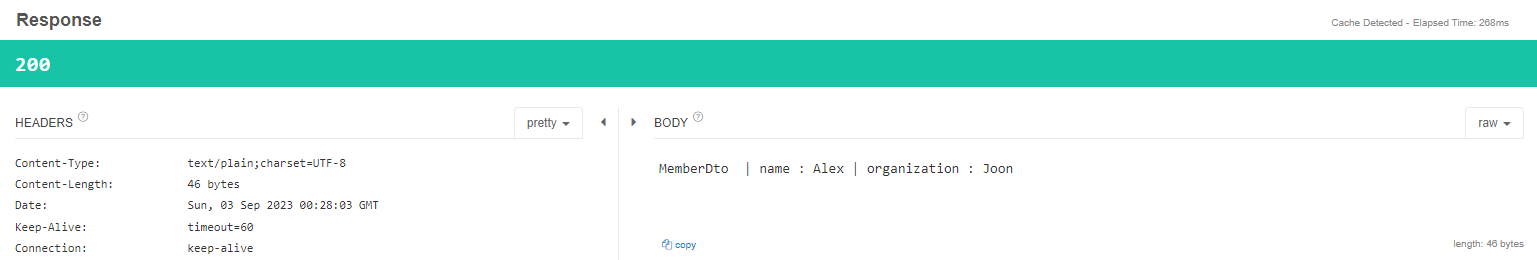 두 번째 코드는 http://localhost:8080/api/v1/put-api/member2 를 통해서 요청을 보냈다