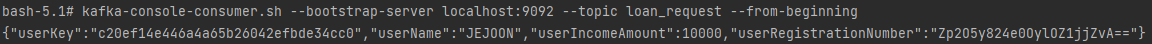 kafka-console-consumer.sh --bootstrap-server localhost:9092 --topic loan_request --from-beginning