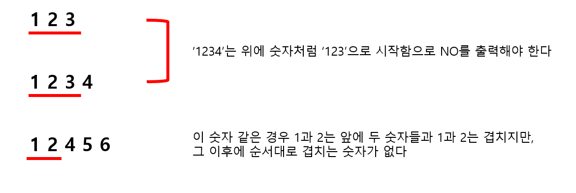 접두어가 있으면 NO를 출력하고 없으면 YES를 출력하는 문제