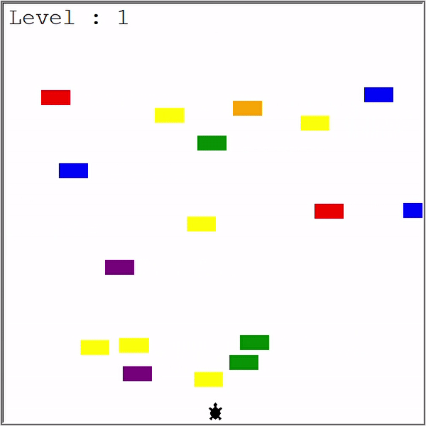 거북이가 도로를 건너면, 다음 레벨로 가고, 자동차 속도는 더 빨라진다