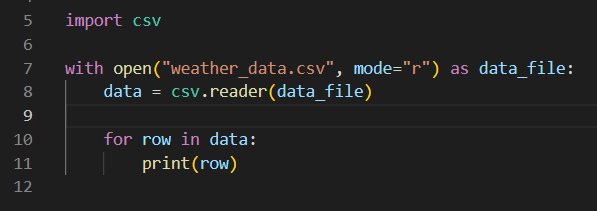 csv.reader()를 사용해서, 각 열의 데이터를 가지고 온다for문으로 순회를 하며, 각 열의 데이터를 볼 수 있다