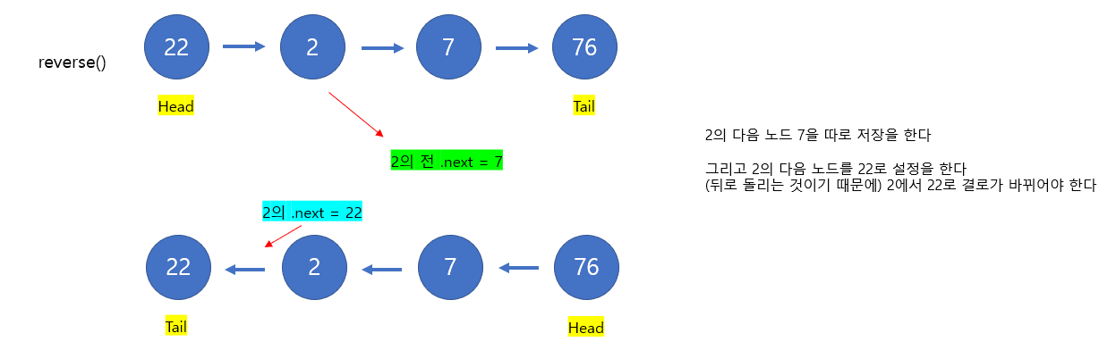 77이 들어갈 자리를 먼저 찾는다 (get(index-1))22와2사이에 들어가야 함으로, 새로운 노드를 생성한다2를 임시 변수에 저장을 한다22의 다음 노드를 새로운 노드와 연결한다- 새로운 노드의 다음 노드를